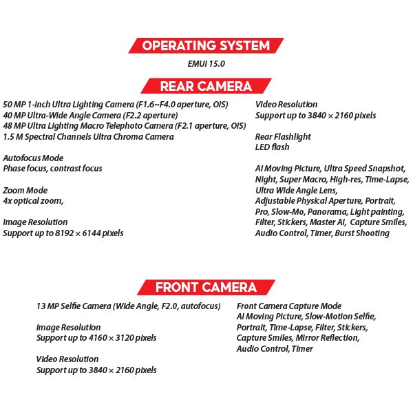 - HUAWEI X-True Display™ with 3,000 nits peak brightness for excellent visibility in sunlight
