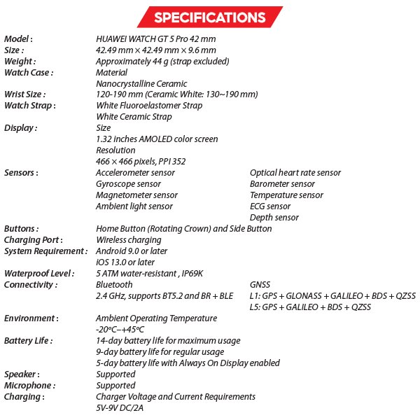 – Includes 13+ watch face themes, Activity Rings 2.0, IP69K water resistance, and seamless syncing with Huawei Health app for real-time tracking.