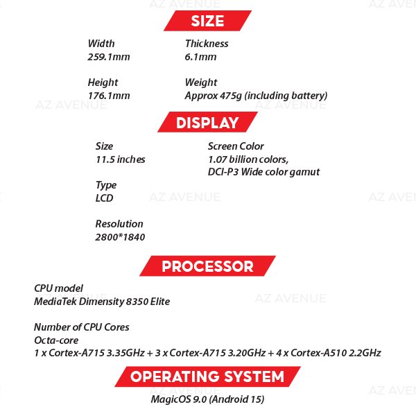 - Lightweight and ultra-thin design, weighing only 475g and measuring just 6.1mm in thickness, making it easy to carry and comfortable to hold for long durations.