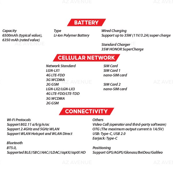 - 35W HONOR SuperCharge: fast and reliable charging