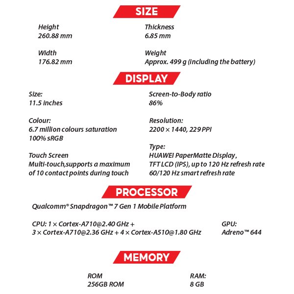- The HUAWEI MatePad 11.5″ is equipped with a 4 nm high-performance processor for effortless work, study, gaming, and entertainment.