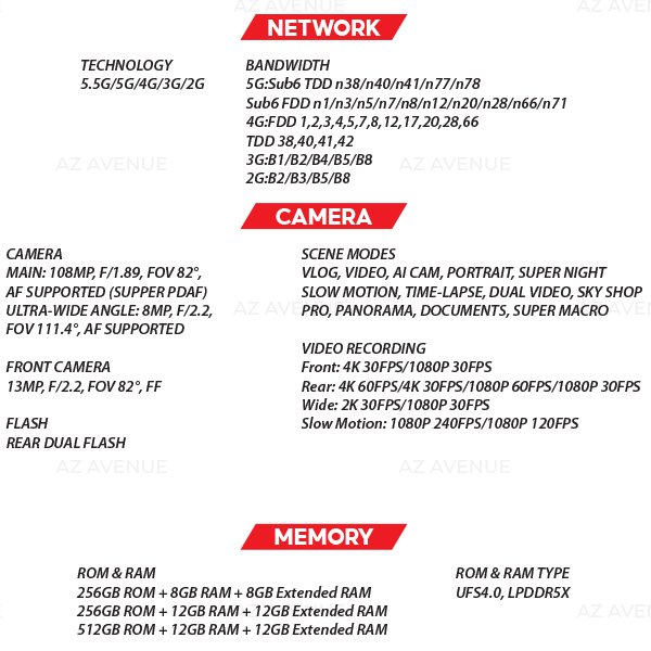 - MediaTek Dimensity 8350 Ultimate 5.5G: Equipped with a powerful 4nm chipset, paired with up to 24GB extended RAM for seamless multitasking and high-speed processing.