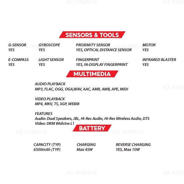 - Massive 6500mAh Endurance Battery: Ultra-high capacity battery designed for long-lasting use, supported by 45W fast charging and 10W reverse charging capabilities.