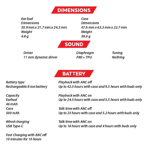- Comfortable Fit: Soft contours and a slim rectangular format make Ear (a) extra comfortable to hold or slide into pockets. It’s lightweight at just 49.2g total and 4.8g per earbud.