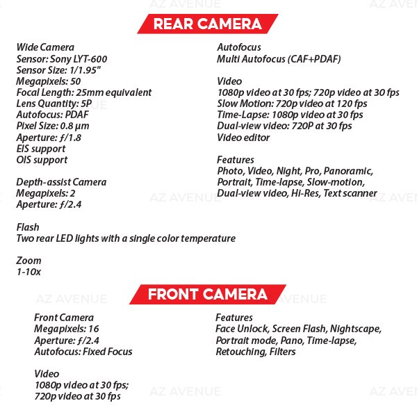 - Clear Photos: Sony LYT-600 camera with Anti-Shake OIS for stable, clear shots.