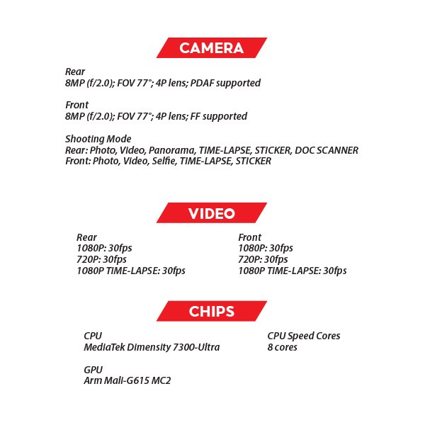 - High-Performance 8-Core Processor: Driven by the MediaTek Dimensity 7300-Ultra CPU and Arm Mali-G615 MC2 GPU for smooth multitasking and gaming.