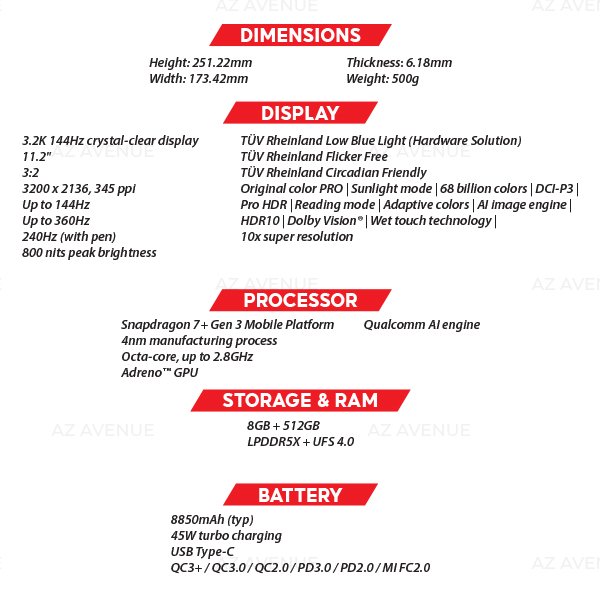 - Smooth Interaction: Supports adaptive 144Hz refresh rate, 10x super resolution touch, DCI-P3 color gamut, and Wet Touch technology for responsive use.