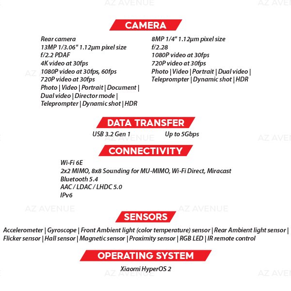 - Xiaomi HyperAI: Integrated AI features support tasks like text generation, image creation, AI art, AI calculator, AI writing, and AI speech recognition for enhanced productivity.