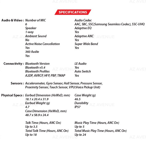- Adaptive EQ/ANC powered by Galaxy AI for personalized sound