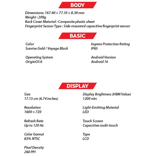 • Modern Android 16 System: Powered by the latest OriginOS 6 for a smooth, secure, and personalized user experience.