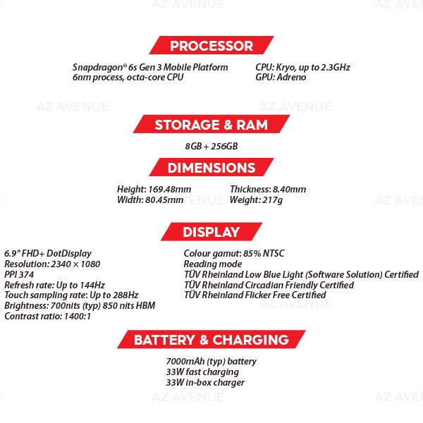 • Snapdragon® 6s Gen 3 with 5G