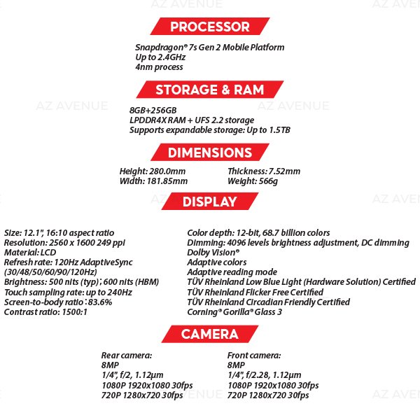 - 12.1-inch 2.5K Display: Enjoy a 12.1-inch flagship display with a 16:10 aspect ratio, perfect for reading, gaming, or movies.