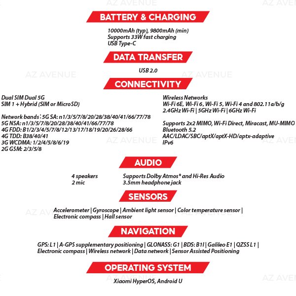 - HyperOS: Pre-installed with Xiaomi HyperOS for smooth interconnection across devices.